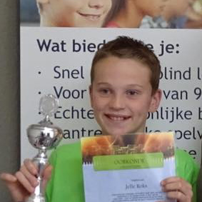 "Ik ben Jelle Roks ben 10 jaar en zit op de Sint Bavoschool in Rijsbergen. ik ben de beste typer van Zuid-West Nederland geworden. Ik had 301 APM en ik vond het een leuk programma om mee te werken en heb er veel aan gehad. Als ik jou was zou ik zeker gaan typen!"